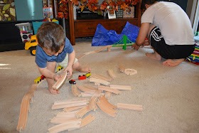 These trains have already caused hours upon hours of fun. I'm so glad we got them for him. And I'm so happy that he loves them!